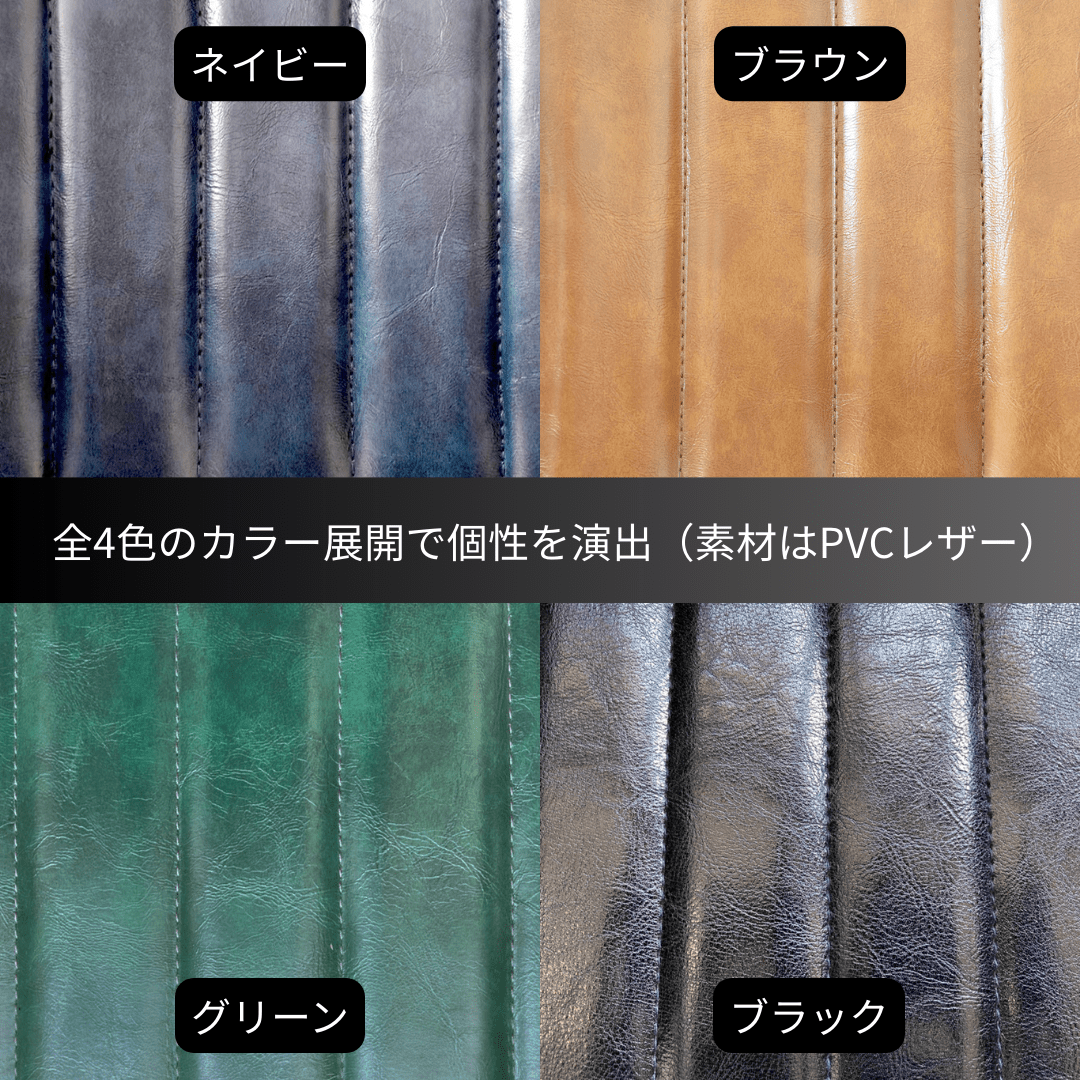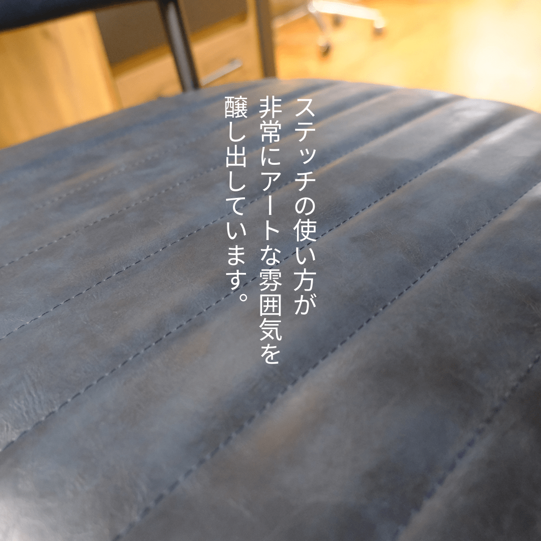 - PUレザーの張地は、しぼ感と模様が美しく、チープさを感じさせない丁寧な仕上がり