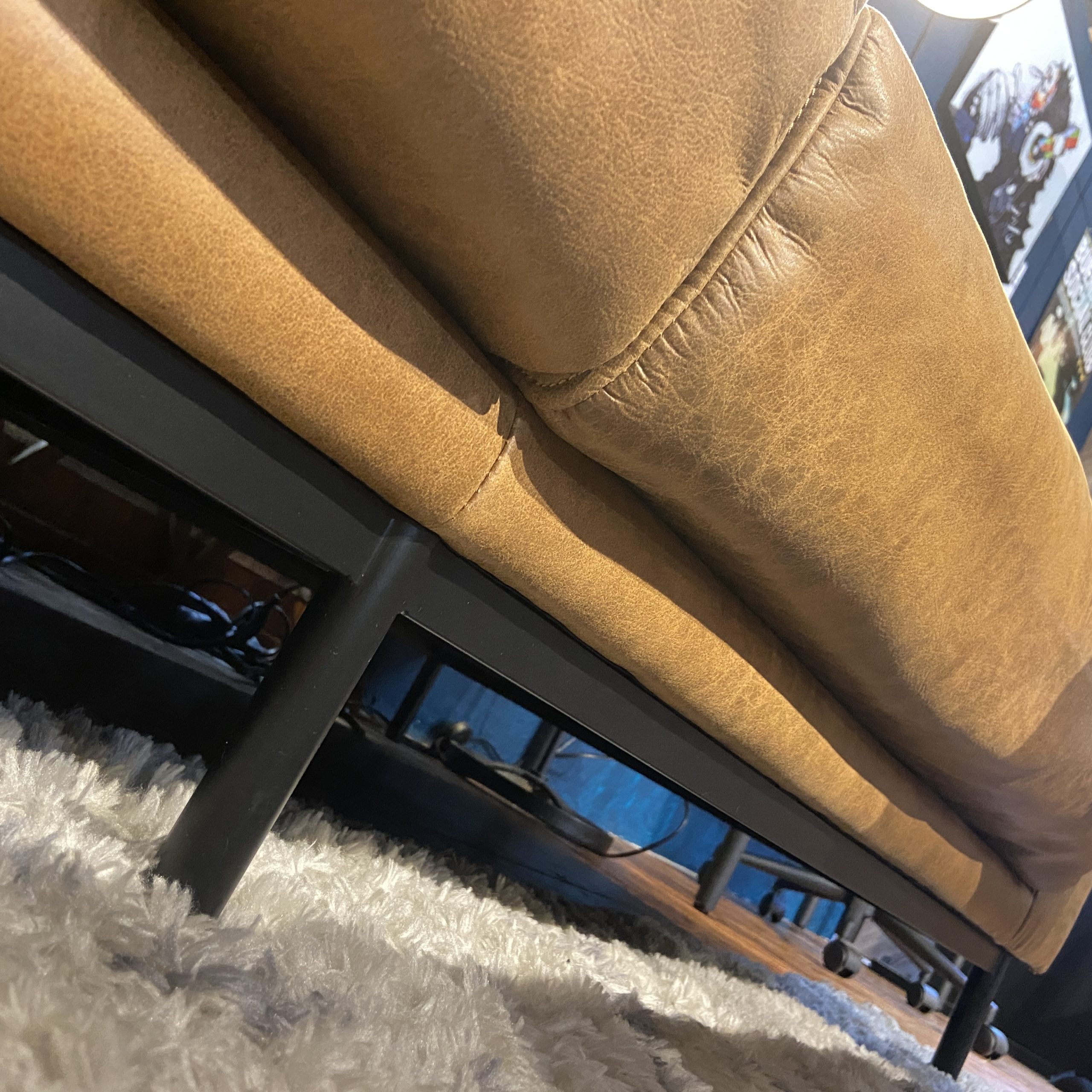 ルーズな張地とブラックスチール脚の組み合わせが、ヴィンテージ感と現代的なシャープさを両立。
