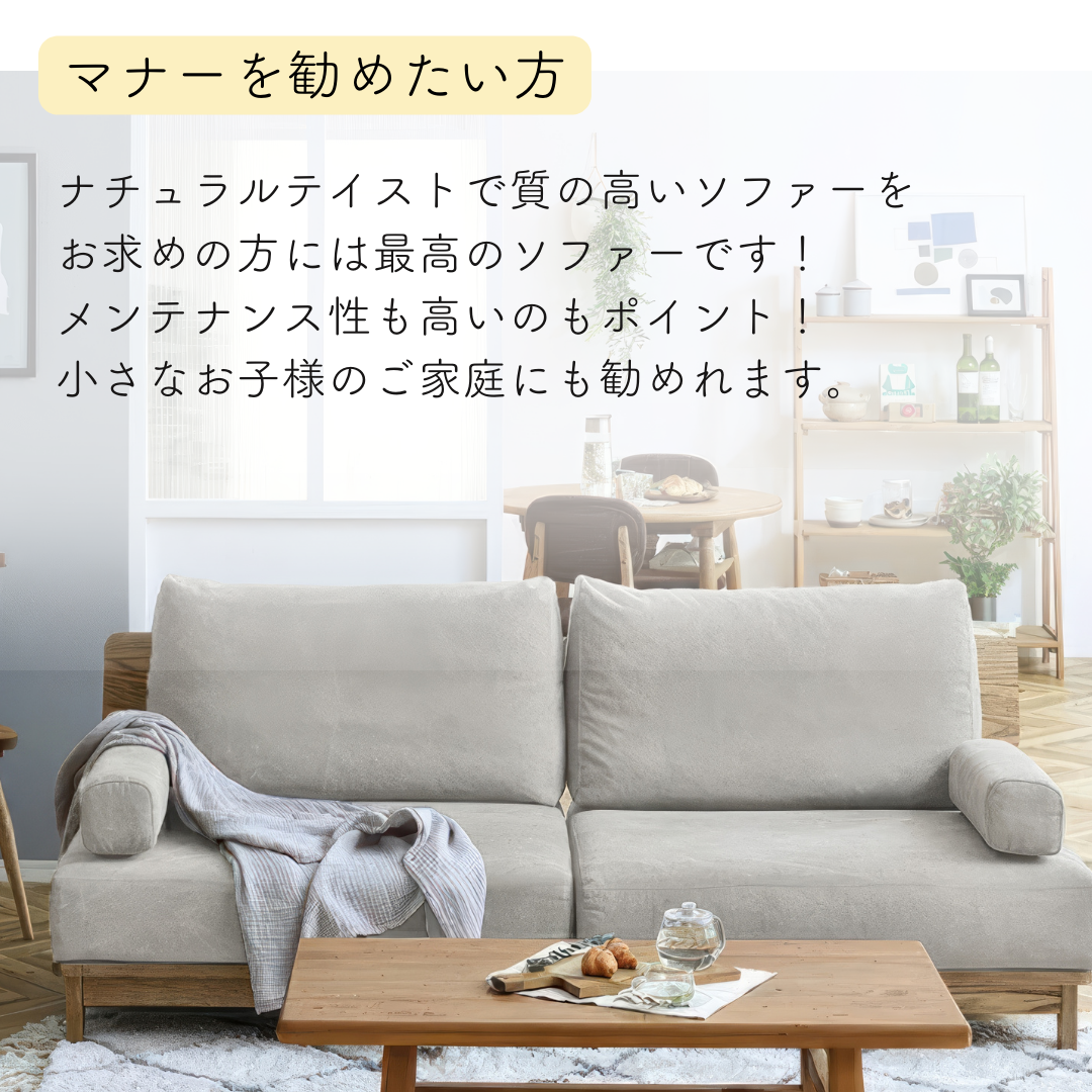 ナチュラルテイストの空間にぴったりで、見た目も、使い心地も、まさに“暮らしに寄り添う「Manner(マナー)」3Pソファです。