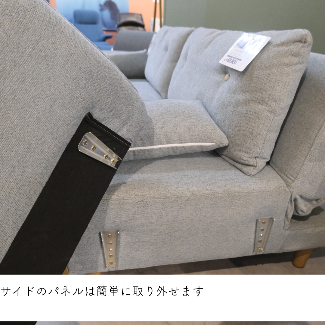 脚はねじ込み式で簡単に着脱可能。脚を外せばローソファーにもなり、お掃除ロボットにも対応。